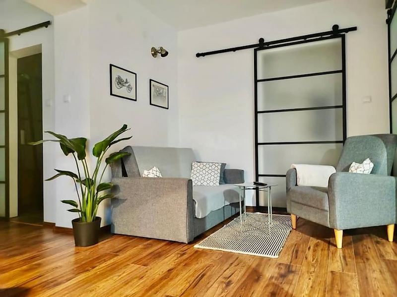 Loft składa się z sypialni (łóżko dwuosobowe + łóżko jednoosobowe) oraz salonu (rozkładana sofa dwuosobowa), w pełni wyposażonej kuchni oraz przestronnej łazienki.
