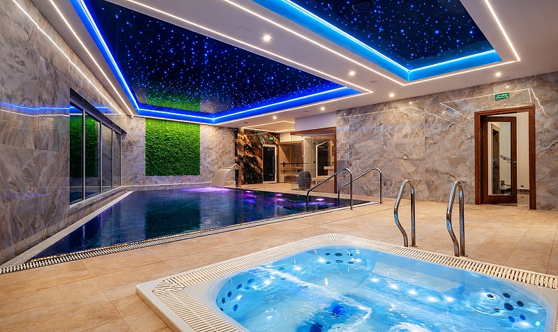 Relaks w Strefie Wodnej: Jako prestiżowy hotel z basenem Krynica oferuje naszym gościom dostęp do nowoczesnej strefy mokrej. Znajdziesz tu nie tylko kryty basen z atrakcjami wodnymi, ale także jacuzzi oraz kompleks saun, które pomogą oczyścić organizm i wyciszyć zmysły po dniu pełnym aktywności.
