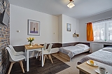 Apartament czteroosobowy (2+2) osobne pokoje z łazienkami dzielące je aneks kuchenny, posiada: