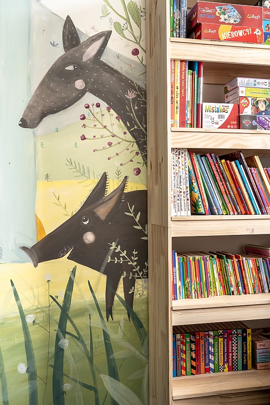 • Salę zabaw z grami planszowymi, książkami, zabawkami, klockami i małym placem zabaw,
